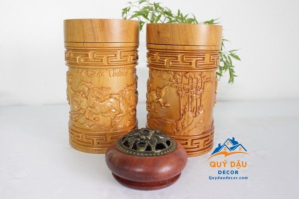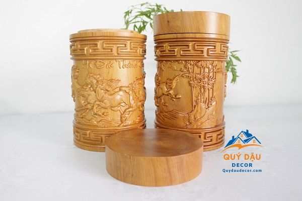 Hộp trà Mã đáo thành công gỗ Bách Xanh